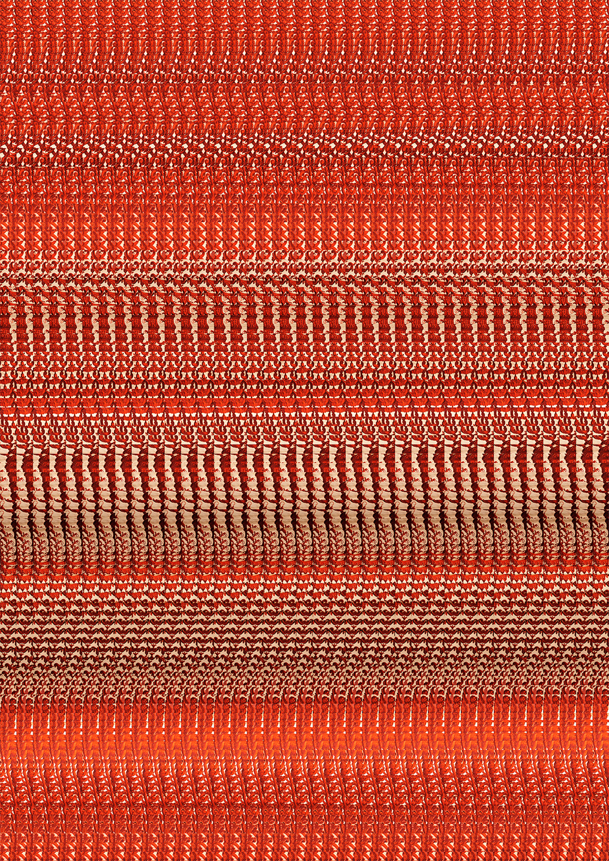 © M+MThe series tessuti was conceived during a stay of the artists at the Centro Tedesco di Studi Veneziani in 2017. Starting point are precious and individual fabric patterns, which are still produced today in the Venetian Tessitura Bevilacqua, a hand weaving mill unique in the world, still using traditional punch cards on old wooden looms. The selected and international clientele of these fascinating fabrics ranges from the White House to the Kremlin and the Vatican. But also pop icons like Mariah Carey are clients for the exquisite textiles of Bevilacqua. In M+M's artistic works, the lined up macro shots of these fabrics become oscillating motifs of a new magical, digital image carpet.